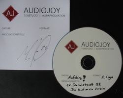 Unten zu sehen, ein Foto der Master CD mit Marcel Hellers Unterschrift, die CD wurde ein Tag vor dem Saisonfinale auf dem Böllenfalltor Parkplatz persönlich übergeben.